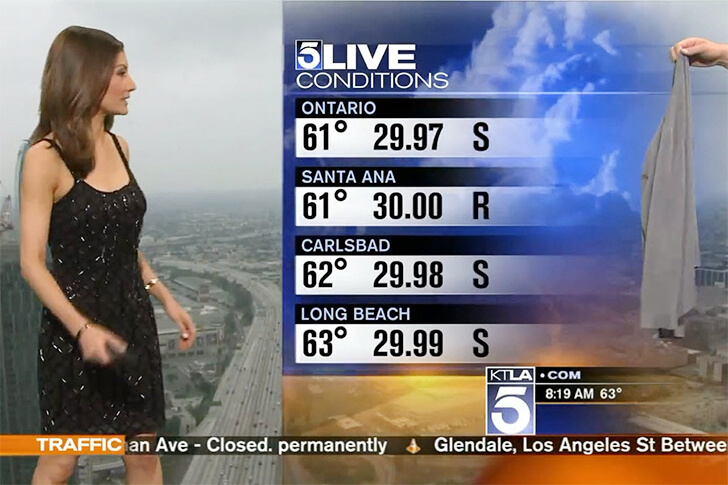 Entre os incidentes relacionados com guarda-roupas, este pode não ser sequer considerado um. No entanto, quando os espectadores viram a meteorologista Liberté Chan usando este reluzente conjunto de festa, não puderam deixar de comentar sobre isso no e-mail do canal, dizendo que era inapropriado para a apresentação.