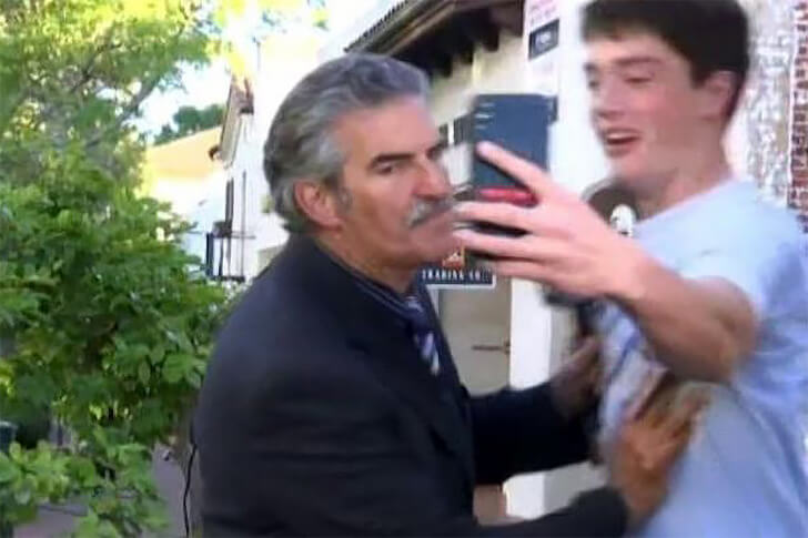 Há coisas melhores a fazer do que brincar com as pessoas quando estão ocupadas e este adolescente de Santa Bárbara teve que aprender isso da maneira mais difícil. John Palminteri, um repórter da KEYT TV, afastou esse garoto quando ele se aproximou para tirar uma foto com a celebridade local.