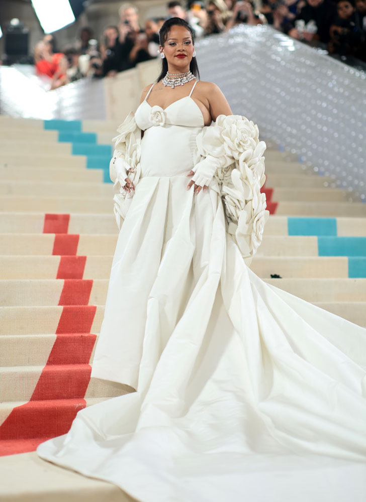 ¡Parece que Rihanna causó sensación en el Met Gala de 2023! Vistió una prenda de Valentino que causó sensación. En la alfombra roja de la entrada a la gala se quitó la casaca blanca con volados que llevaba puesto y dejó a la vista un vestido del mismo color con hombros descubiertos.