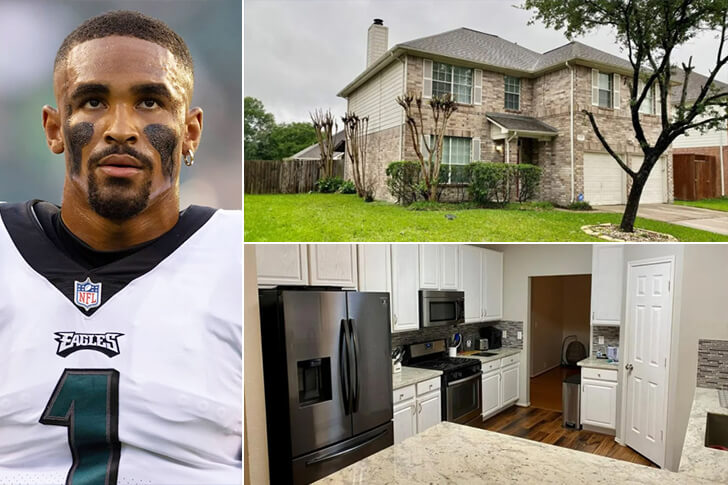 Jalen Hurts, the Philadelphia Eagles’ star quarterback, purchased a charming 2,332-square-foot home in 2020 in Humble, Texas, for $215K. This three-bedroom, 2.5 bathroom residence features a classic brick exterior, granite countertops, and a spacious backyard patio perfect for family gatherings.