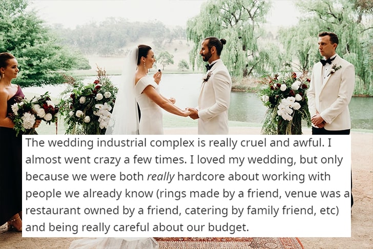 Navigating the wedding industrial complex without losing your mind—or life savings—is like walking a tightrope over a pool of peonies and champagne. But it’s not impossible. Take a leaf from u/orthecreedence’s book and stick with vendors you know.